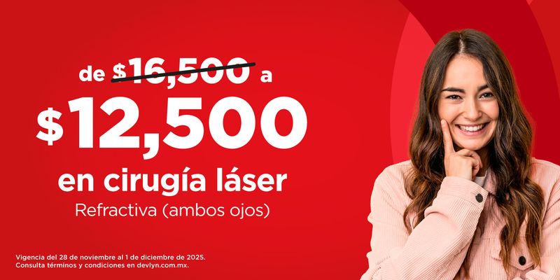 1554Cirugía Láser en los Ojos (Ambos ojos)https://www.devlyn.com.mx/cirugia-laser-en-los-ojos/phttps://devlyn.vtexassets.com/arquivos/ids/184015/Laser-12500.jpg?v=638999443509700000https://devlyn.vtexassets.com/arquivos/ids/184016/Requisitos.jpg.jpg?v=638999443512200000https://devlyn.vtexassets.com/arquivos/ids/184017/Ubicacion.jpg.jpg?v=638999443513600000https://devlyn.vtexassets.com/arquivos/ids/184018/Laser_AON.jpg?v=6389994435156300001250016500MXNDEVLYNInStock/CLÍNICA/Cirugía refractiva para ambos ojos, la cual permite disminuir la dependencia del uso de lentes oftálmicos y/o de contacto para pacientes que padecen de miopía, hipermetropía y/o astigmatismo.<br/><br/><strong> Requisitos básicos para ser candidato a cirugía refractiva: </strong><br/><br/><ol><li>Ser mayor de 21 años y menor de 45 años.</li><li>No haber presentado cambios de graduación durante el último año.</li><li>No ser hipertenso y/o diabético.</li><li>En el caso de mujeres NO estar embarazada o lactando.</li><li>Si el paciente es usuario de lente de contacto mencionar que deberá descansar del uso del lente de contacto mínimo 15 días antes de acudir a su cita de valoración.</li><li>Si el paciente cuenta con 8 dioptrías totales o más, NO será candidato a menos que esté de acuerdo con una hipocorrección únicamente (seguirá usando lentes después de la cirugía).</li></ol><br/><br/> El precio de promoción aplica únicamente para cirugías que se realicen en Clínica Devlyn Polanco (CDMX) y Puebla. El precio de promoción no es acumulable con otras promociones y/o descuentos y/o cupones y no es transferible. <br/><br/><br/><br/> En caso de NO ser candidato a la cirugía, se realizará la devolución de acuerdo con lo mencionado en los términos y condiciones en el apartado “Proceso de devolución en caso de NO ser candidato a la cirugía” <br/><br/><br/><br/> Para más información consulta: https://www.devlyn.com.mx/promociones-online1564Cirugía Láser en los Ojos (Ambos ojos)1250016500https://www.devlyn.com.mx/cirugia-laser-en-los-ojos/phttps://devlyn.vtexassets.com/arquivos/ids/184015/Laser-12500.jpg?v=638999443509700000https://devlyn.vtexassets.com/arquivos/ids/184016/Requisitos.jpg.jpg?v=638999443512200000https://devlyn.vtexassets.com/arquivos/ids/184017/Ubicacion.jpg.jpg?v=638999443513600000https://devlyn.vtexassets.com/arquivos/ids/184018/Laser_AON.jpg?v=638999443515630000InStockMXN99999Precio exclusivo para compra en línea, Ciudades Participantes: México, D. F., Puebla, Pue., Requisitos básicos para ser candidato a cirugía:, Mayor de 21 y menos de 45 años, No ser hipertenso o diabético, No haber presentado cambios de graduación durante el último año, No estar embarazada, No estar lactandoEl precio de promoción aplica únicamente para cirugías que se realicen en Clínica Devlyn Polanco y Clínica Devlyn Puebla., El precio de promoción no es acumulable con otras promociones y/o descuentos., En caso de no ser candidato, únicamente se hará el cobro de la consulta, con valor de $700. y se reembolsa el resto en la clínica donde acudió a la valoración., La devolución se realizará en un periodo no mayor a los 30 días hábiles, a partir de la fecha de recepción de su documentación., El cliente tendrá hasta 2 meses para acudir a su cita.Te recomendamos leer nuestras notas de Blog Devlyn, <br></br>, <a href="https://www.devlyn.com.mx/blog-devlyn/cuando-decirle-si-a-una-cirugia-laser"> ·¿CUÁNDO DECIRLE SÍ A UNA CIRUGÍA LÁSER? </a> , <br></br>, <a href="https://www.devlyn.com.mx/blog-devlyn/quienes-pueden-hacerse-una-cirugia-laser"> ·¿QUIÉNES PUEDEN HACERSE UNA CIRUGÍA LÁSER? </a> , <br></br>, <a href="https://www.devlyn.com.mx/blog-devlyn/cual-es-la-edad-perfecta-para-hacerse-la-cirgugia-laser"> ·¿CUÁL ES LA EDAD PERFECTA PARA HACERSE LA CIRUGÍA LÁSER? </a> , <br></br>, <a href="https://www.devlyn.com.mx/blog/5-beneficios-de-la-cirugia-laser"> ·BENEFICIOS DE LA CIRUGÍA LÁSER </a>