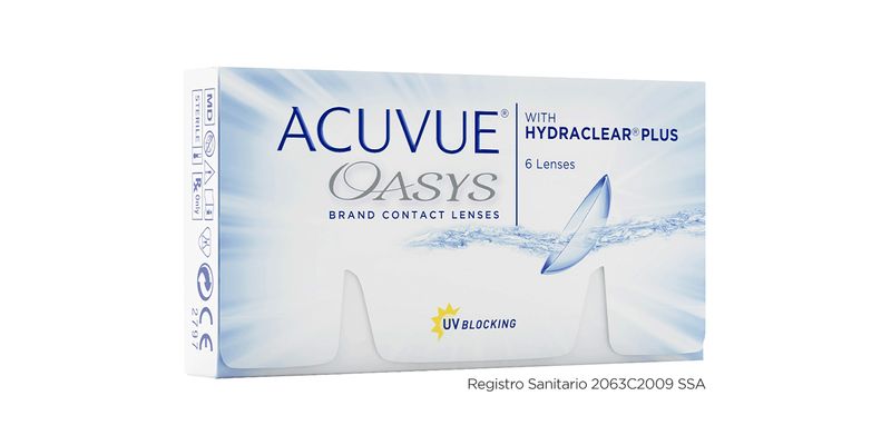 4827Lente de contacto Oasys Miopía e Hipermetropíahttps://www.devlyn.com.mx/lente-de-contacto-acuvue-oasys-miopia-e-hipermetropia/phttps://devlyn.vtexassets.com/arquivos/ids/185199/Oasys_Hydraclear_1.jpg?v=639078134118000000https://devlyn.vtexassets.com/arquivos/ids/185200/Oasys_Hydraclear_2.jpg?v=63907813411833000099809980MXNACUVUEInStock/LENTES DE CONTACTO/Lentes para Miopía//LENTES DE CONTACTO/<br/>¡Por lanzamiento adquiere tu tratamiento trimestral adquiriendo 6 cajas y llévate un obsequio!<br/><ul><li><strong>Marca Lentes: </strong>Acuvue Oasys</li><li><strong>Uso: </strong>Quincenal</li><li><strong>Presentación: </strong>Caja con 6 lentes (6 unidades)</li><li><strong>Curva Base: </strong>8,4 mm</li><li><strong>Diámetro: </strong>14</li><li><strong>Contenido de Agua (%): </strong>38%</li><li><strong>Permeabilidad al Oxígeno: </strong>147 Dk/t </li><li><strong>Material: </strong>Hidrogel de Silicona</li><li><strong>Afección visual: </strong>Miopía e Hipermetropía</li><li><strong>Registro Sanitario</strong>: 2063C2009 SSA</li></ul>25195Lente de contacto Oasys Miopía e Hipermetropía99809980https://www.devlyn.com.mx/lente-de-contacto-acuvue-oasys-miopia-e-hipermetropia/phttps://devlyn.vtexassets.com/arquivos/ids/185199/Oasys_Hydraclear_1.jpg?v=639078134118000000https://devlyn.vtexassets.com/arquivos/ids/185200/Oasys_Hydraclear_2.jpg?v=639078134118330000InStockMXN10UnisexHipermetropía, MiopíaMensualMensual6 unidades = 3 pares