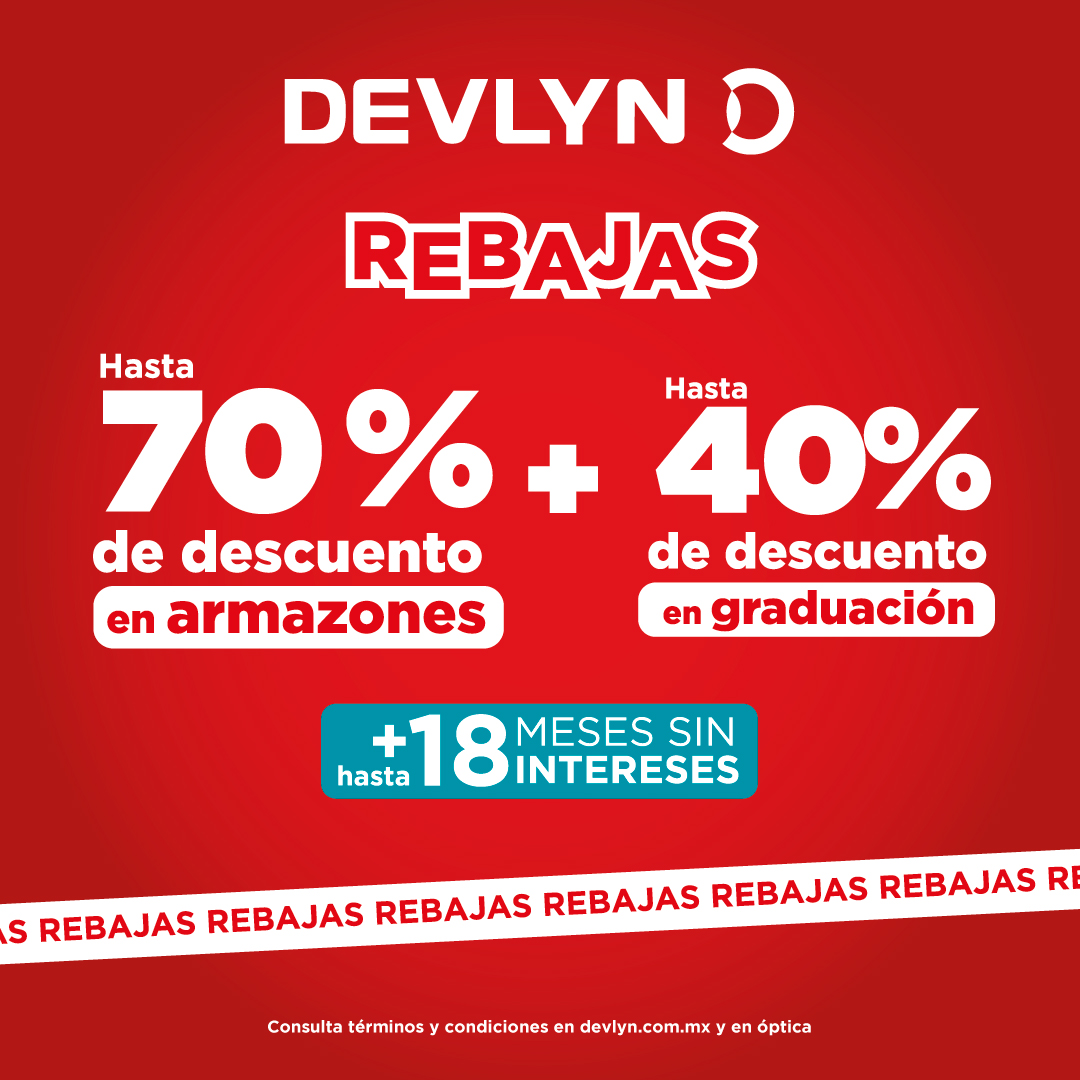 Consulta marcas y modelos de armazones oftálmicos participantes para cada descuento (consulta existencia de productos por convenio en tienda). Aplica en armazones oftálmicos. Los descuentos aplican de la siguiente manera: Oftálmicos: 20% de descuento, 30% de descuento y 70% de descuento. Los descuentos 20%, 30% y 70% se encuentran etiquetados e identificados en óptica. Si el cliente desea graduar su armazón puede hacerlo con: El 40% de descuento que aplica para: Visión Sencilla Poly Blanco, Vision sencilla + antirreflejante. El 30% de descuento aplica para: Visión Sencilla Poly + Blue Light Visión Sencilla Fotocromático + antirreflejante, Progresivo Blue light, Progresivo Fotocromático + antirreflejante. Visión Sencilla Crizal (blanco Asferico), Visión Sencilla Transitions + Crizal (eyezen, Asferico), Progresivo Varilux Comfort Blanco + Crizal, Progresivo Varilux Comfort + Transitions + Crizal, Progresivo Varilux Physio + Crizal, Progresivo Varilux Physio + Transitions + Crizal. No aplica para armazones Chanel Oft, Sol, Tom Ford Oft, Sol, YVES SAINT LAURENT Oft, Sol, Rayban meta Oft, Sol, Cartier Oft, Sol, Bottega Veneta Oft, Sol. No acumula con otras promociones y/o descuentos. Aplica hasta 18 y 13 meses sin intereses con Citi Banamex, 6 y 3 meses sin intereses con BBVA, SANTANDER, HSBC, BANORTE, INBURSA, SCOTIABANK, AFIRME, AMERICAN EXPRESS, NU.